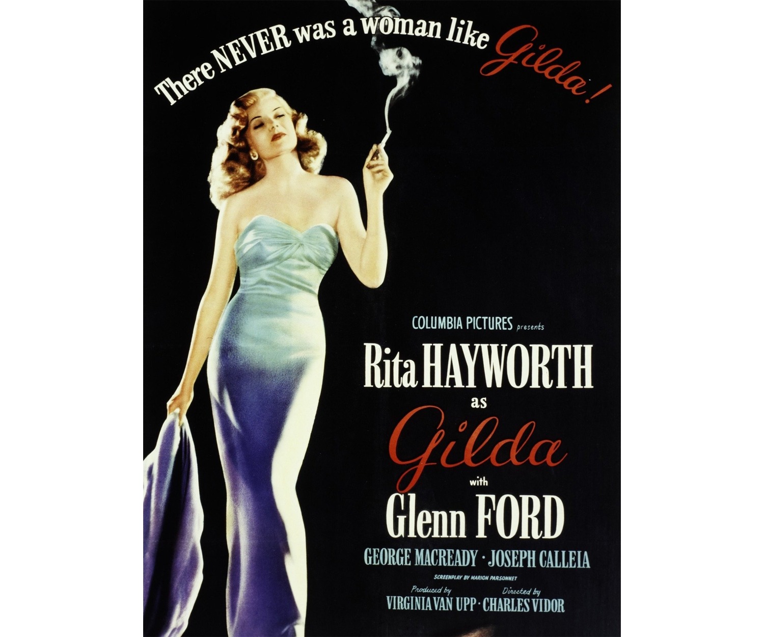 This black-and-white masterpiece runs 110 minutes and stars Rita Hayworth, Glenn Ford, George Macready, Joseph Calleia, Steven Garay, and Joe Sawyer.